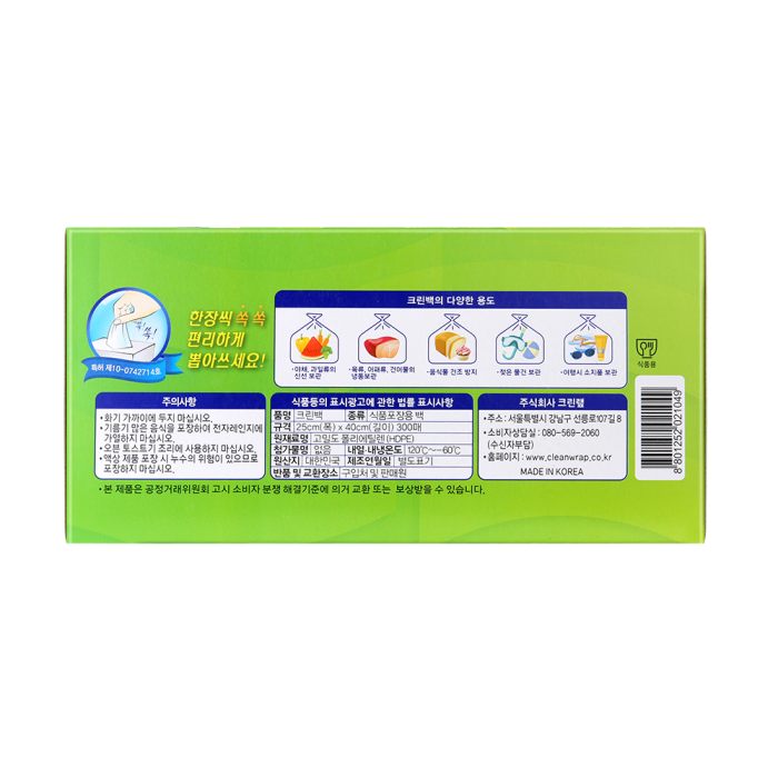 | 품명 및 모델명 | 크린백 25x40cm 300매 |
